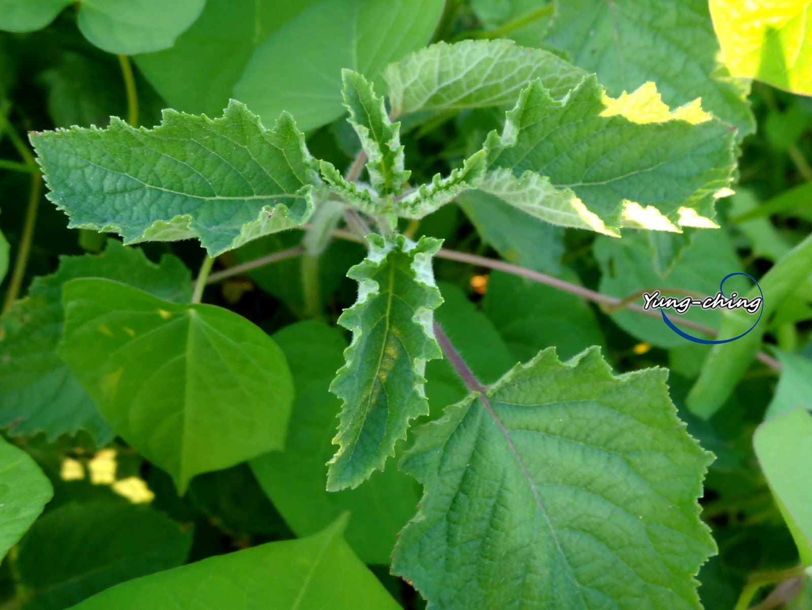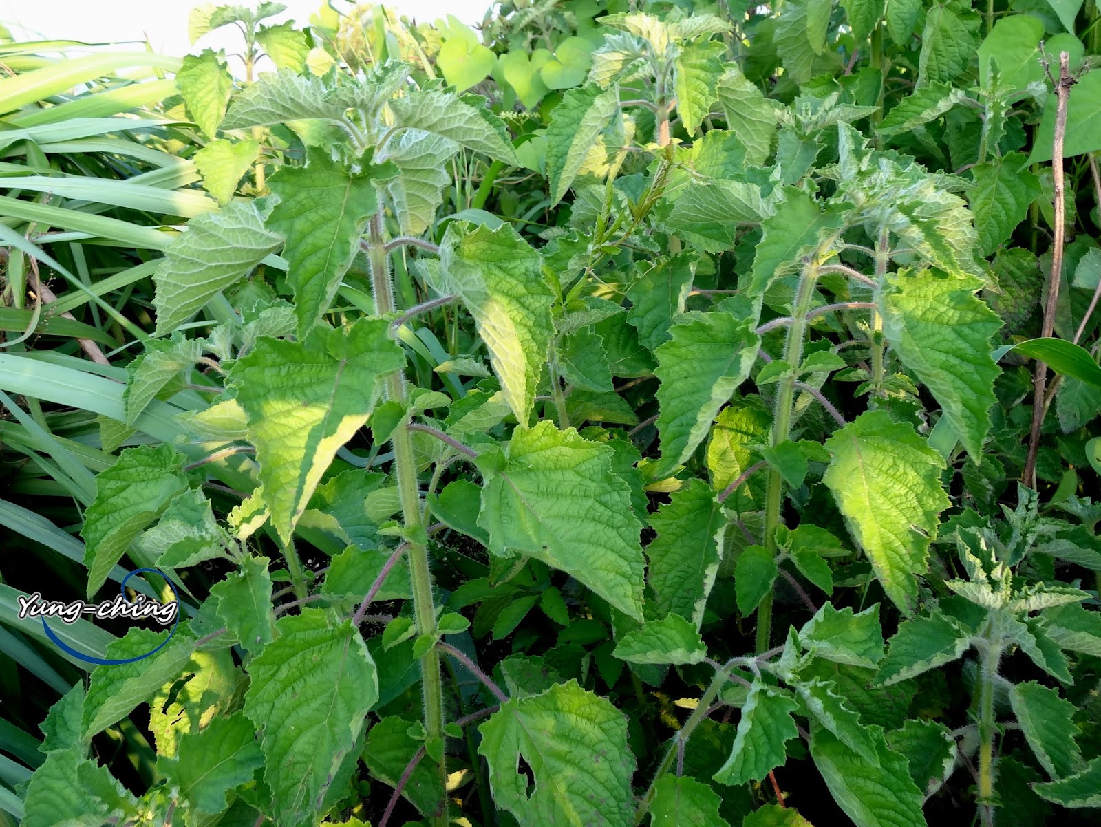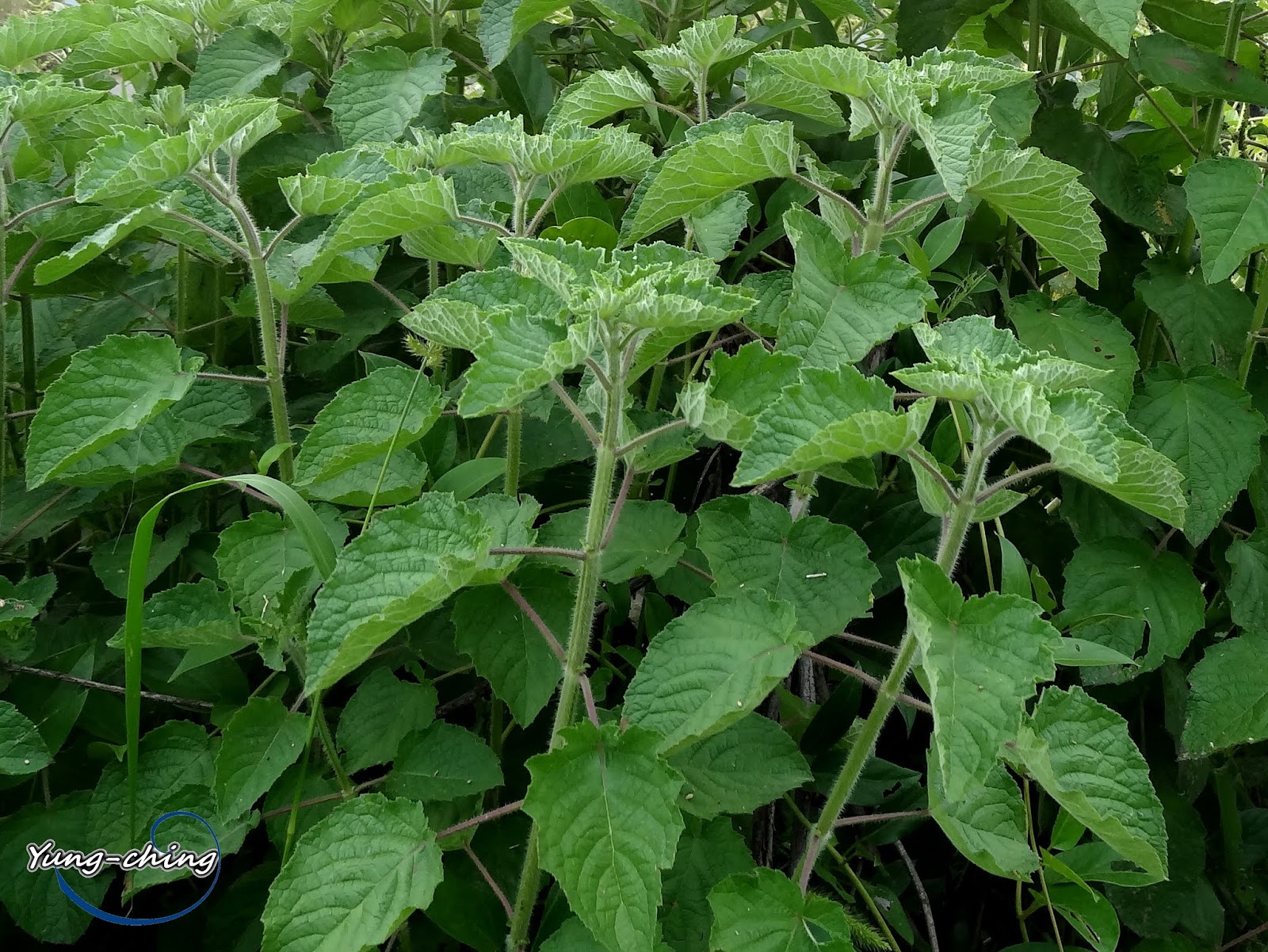 莖:一年生草本,高 50~150 公分;莖方形,直立,粗壯,多分枝,