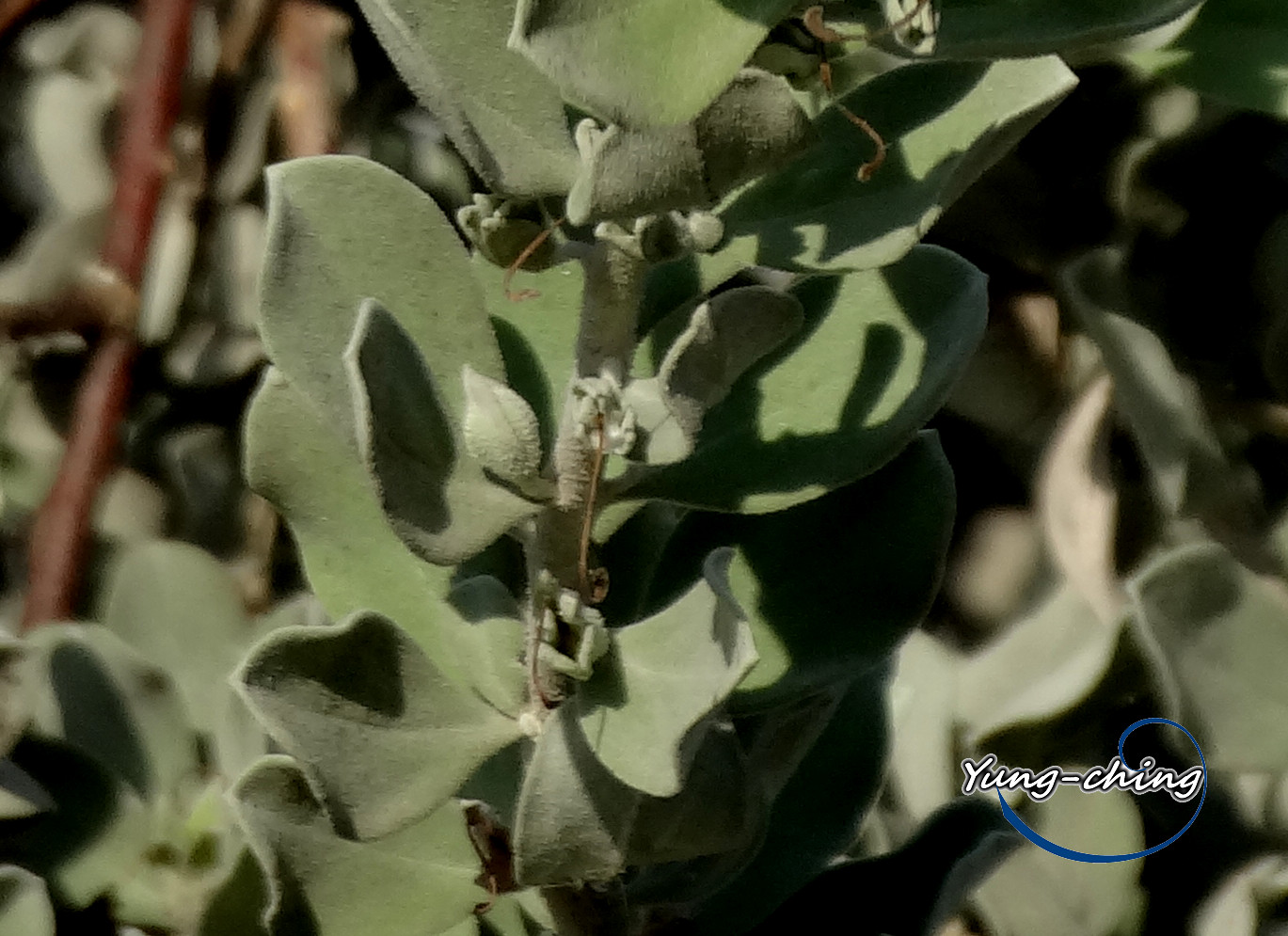 玄參科的紅花玉芙蓉與民間用來避邪植物菊科蘄艾(芙蓉).很相似葉片都密被灰白色絨毛.