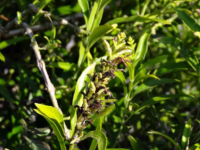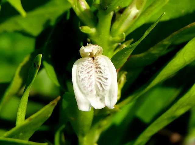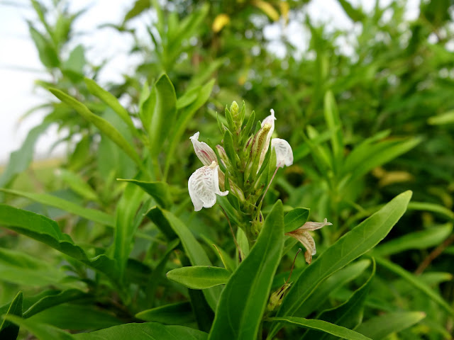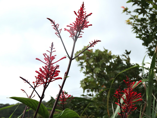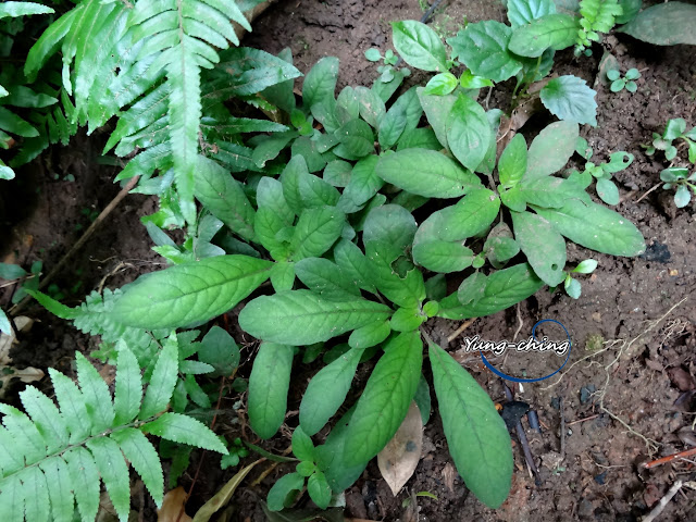 為藥草引進植物.我不常見.這次意外發現趕緊紀錄.典型爵床科花序.倒是不難辨認.