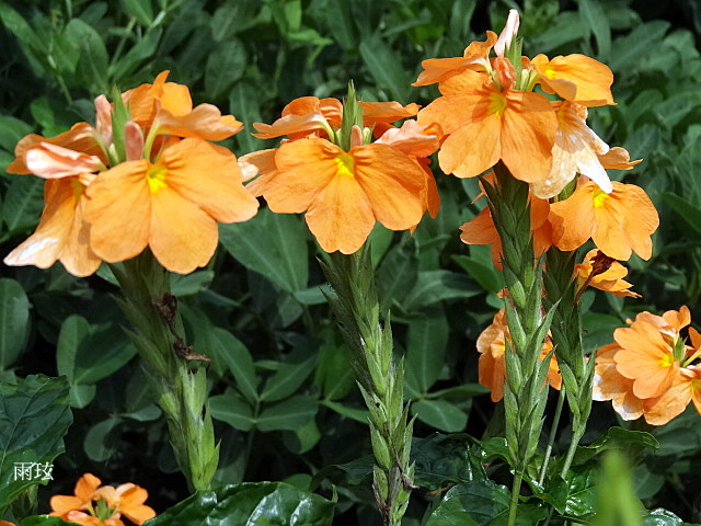 花色為橙 黃,開花時穗狀花序由下往上開,細長的筒狀中長出花瓣,可以長到10公分長