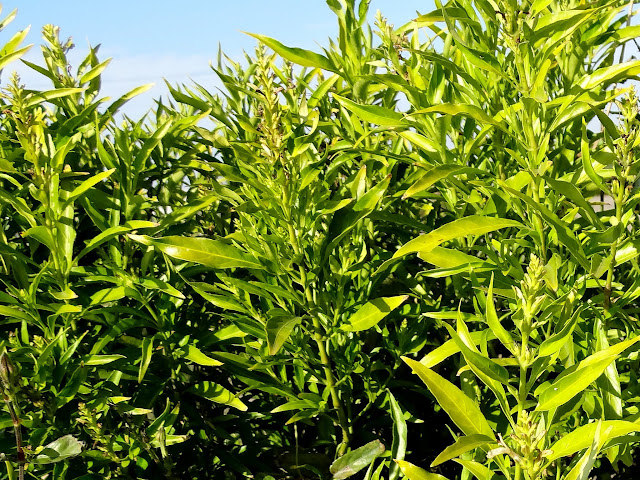 下面黃綠色,光亮。初夏開花,穗狀花序頂生或生於上部葉腋內,長 4~10 公分,