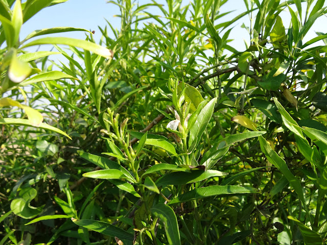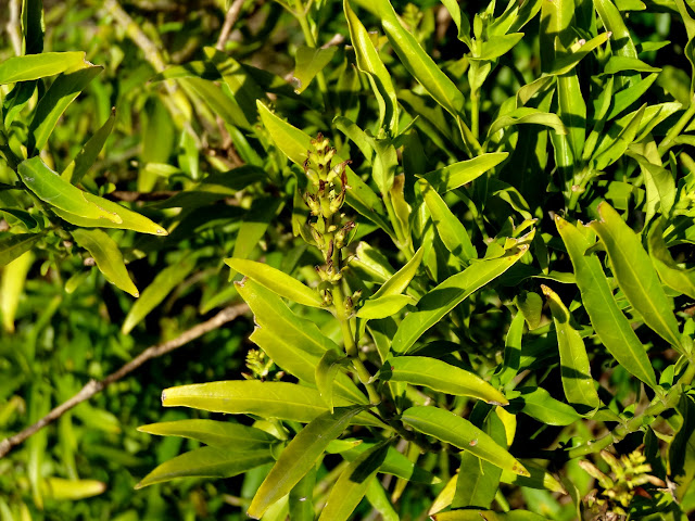 葉:葉對生,具短柄,披針形,長 4~14 公分,寬 1~2 公分,先端漸尖,