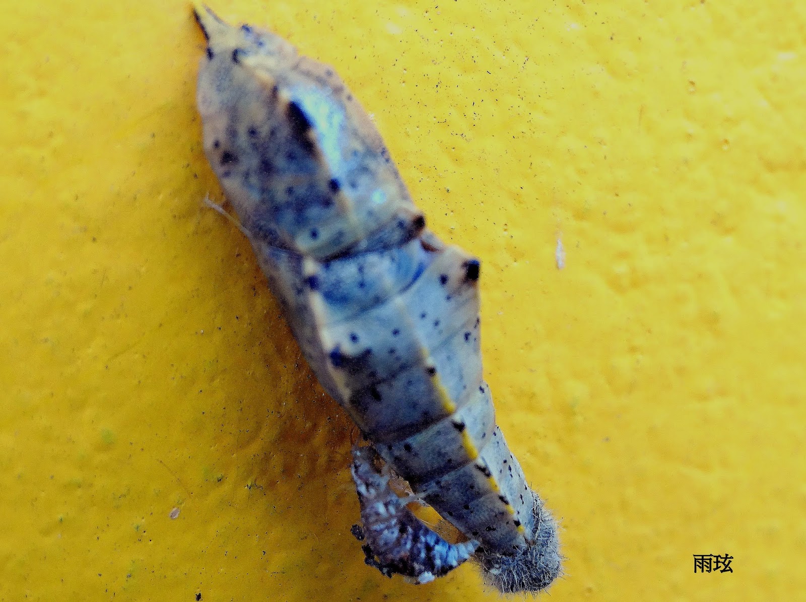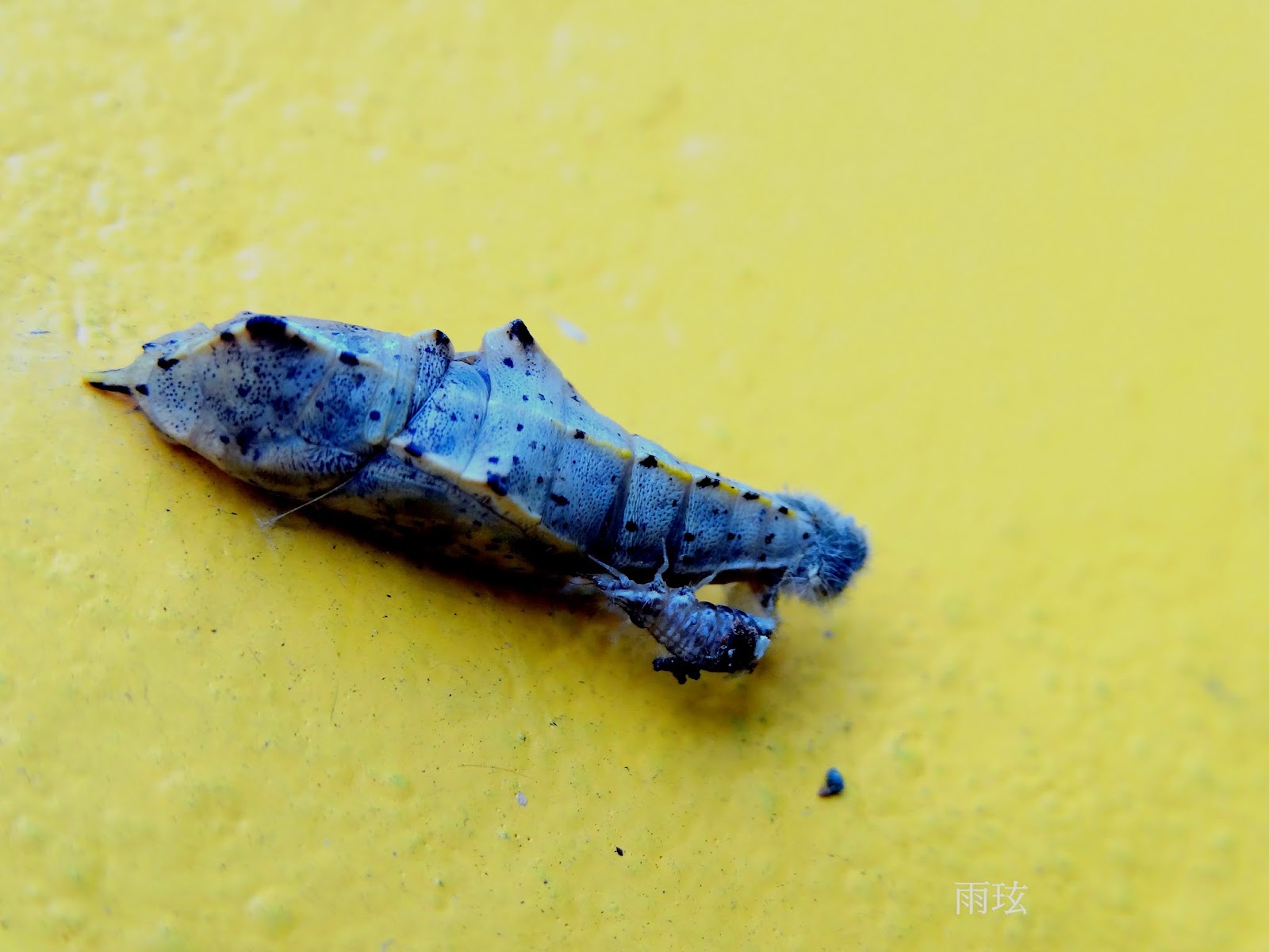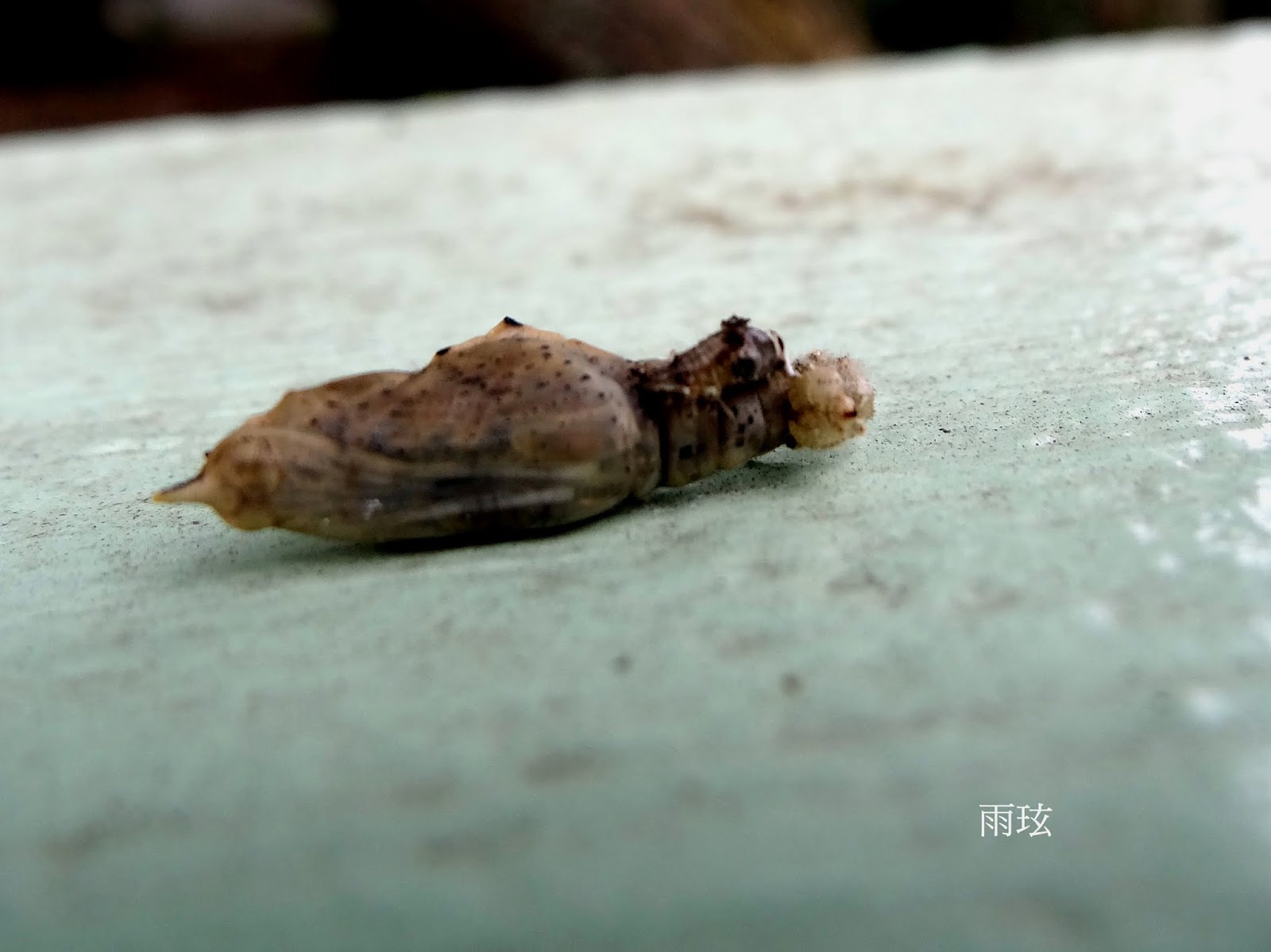 這圍牆常有紋白蝶的終齡蟲選在這裡化蛹.卻不想會慘遭毒手!