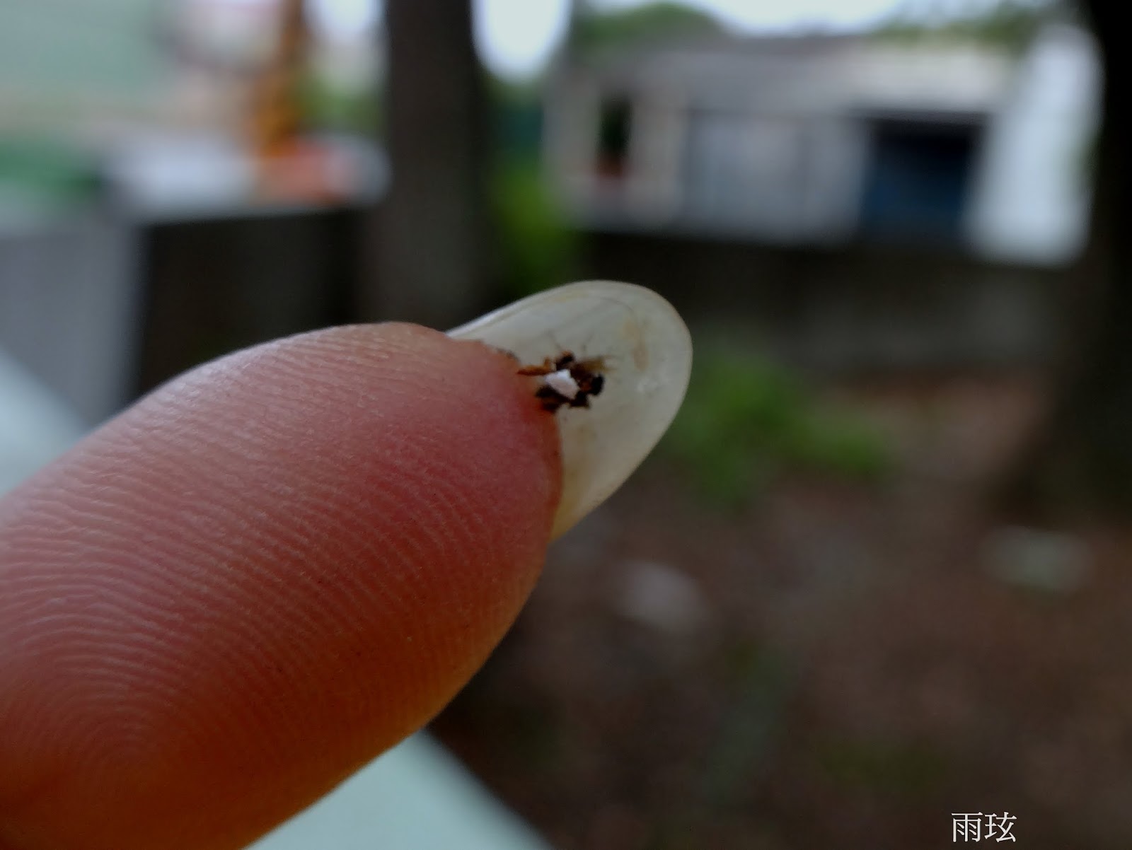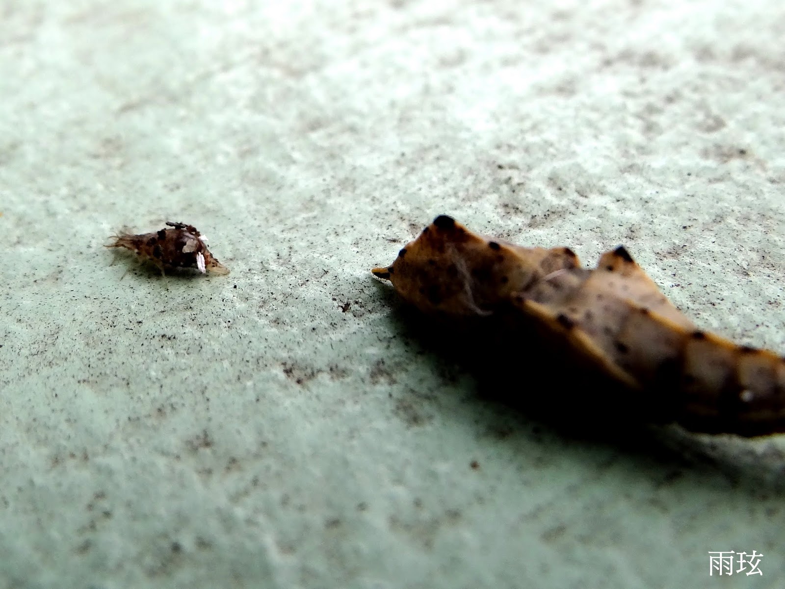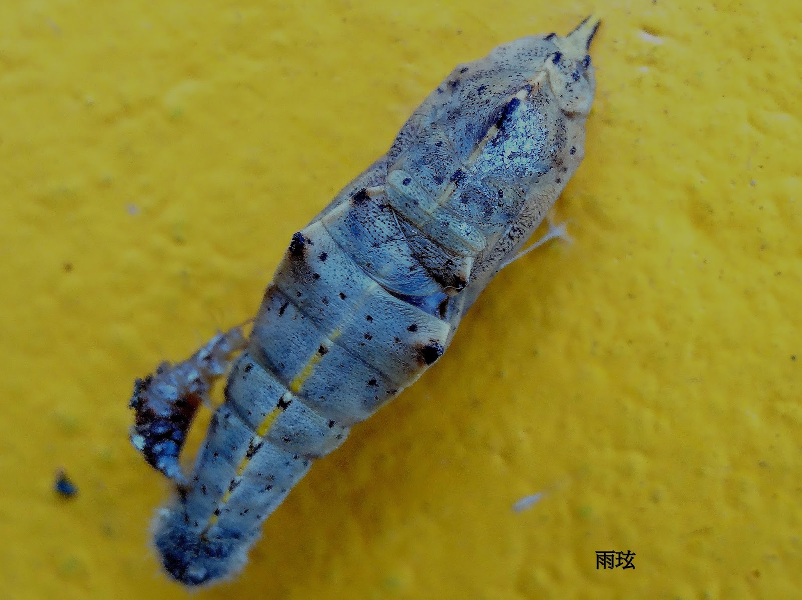 這圍牆常有紋白蝶的終齡蟲選在這裡化蛹.卻不想會慘遭毒手!