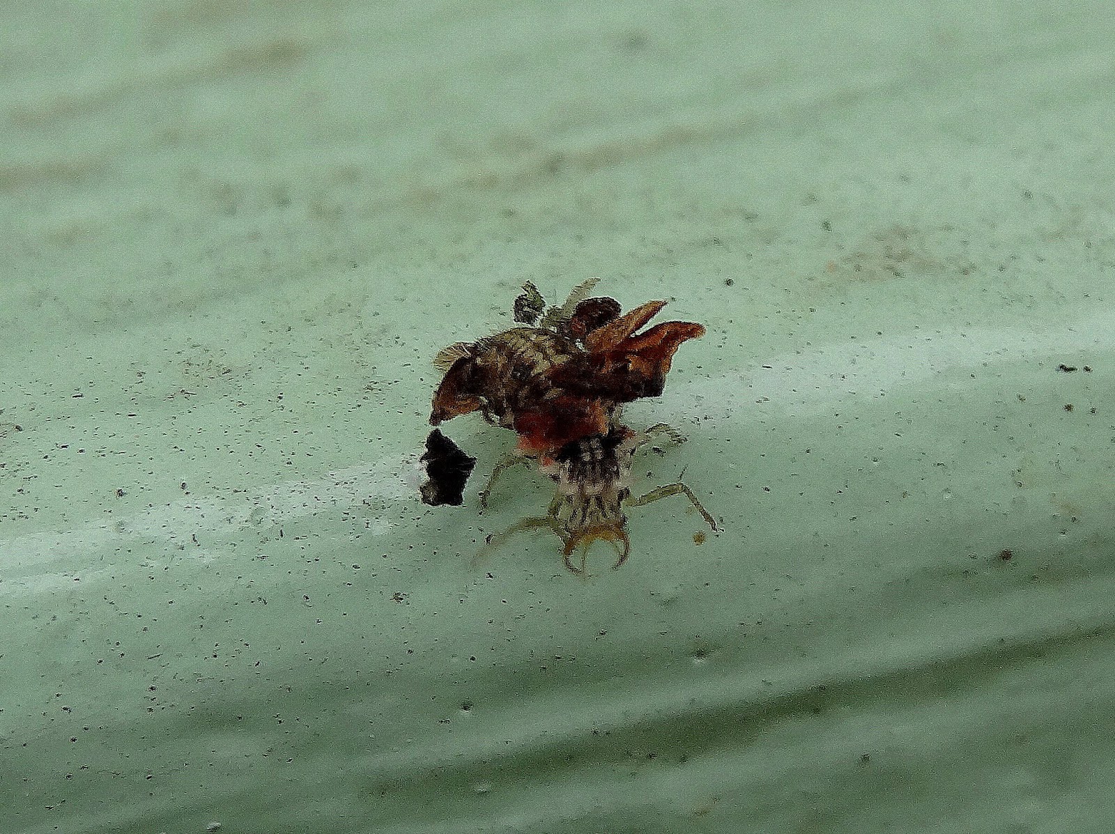 將獵物體液吸盡.也擅長偽裝會將垃圾及吃過的獵物屍體黏在背上,