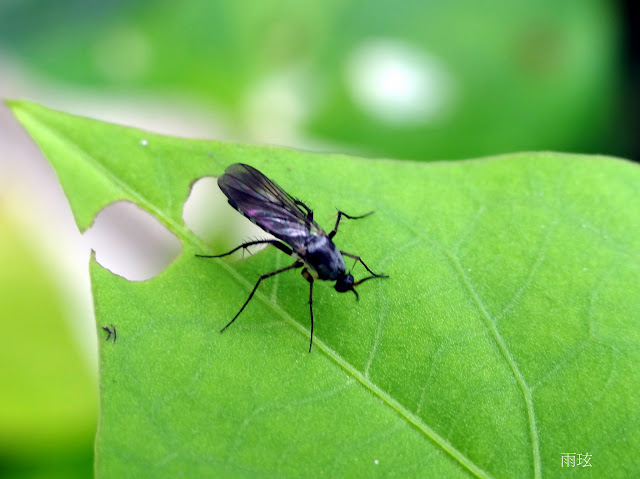 小菜園的地瓜葉上常見到這種像蚊子又比蚊子大,本以為是葉蜂,