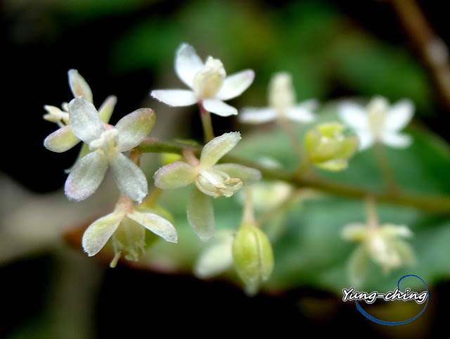 花朵白色花瓣四枚,花徑約0.4㎝,很容易自花受粉,因此結果率相當高。果實紅色,