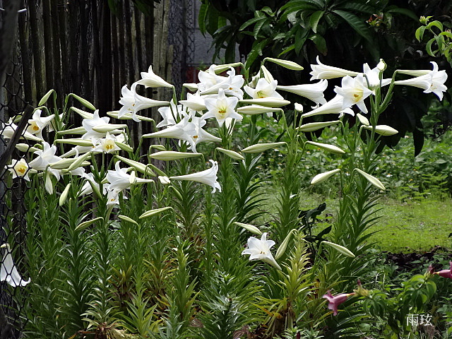 春天百合花處處開.這平地的百合與山上的原生種略為不同.這是純白的.