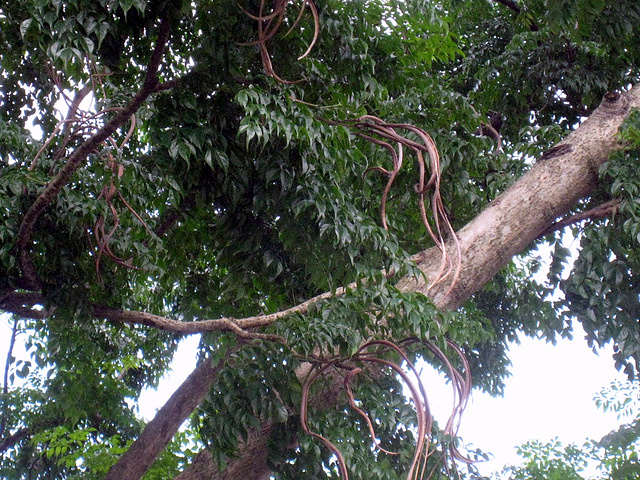 這棵海南菜豆樹是私人宮廟從花盆中移植出來.之後便忘了它的存在.也沒人特別照顧.
