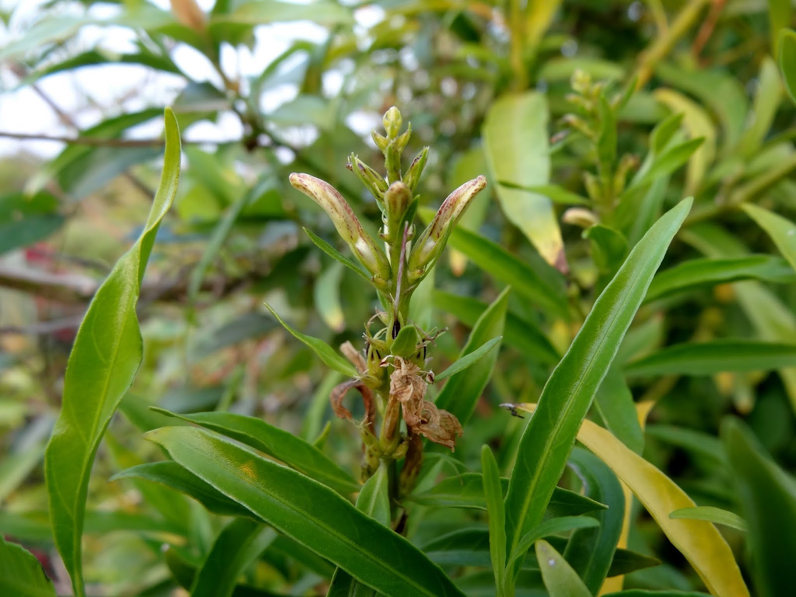 為藥草引進植物.我不常見.這次意外發現趕緊紀錄.典型爵床科花序.倒是不難辨認.