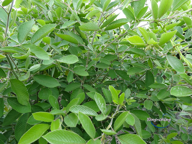 特性:灌木.高 75~150 公分.枝具三稜.密生短柔毛。小葉三枚,倒卵狀長橢圓形;