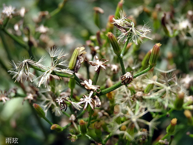 瘦果狹披針形,有 10 稜,具多數冠毛,黃褐色。花期四季均有。