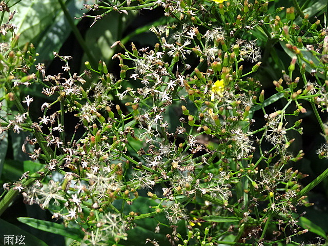 葉片漸小。花序具短中軸,著生頭狀花,排列呈繖房狀。花黃色,花徑 0.8~1 公分。