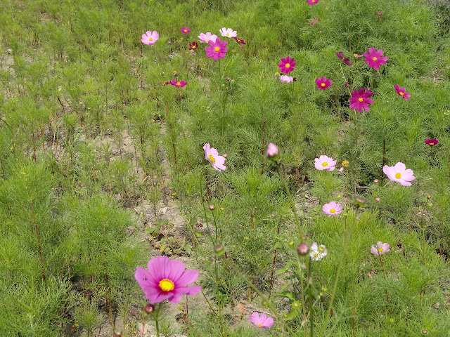 這回是波斯菊.波斯菊它原產於墨西哥.在哥倫布發現新大陸之後.船員們採下種子.