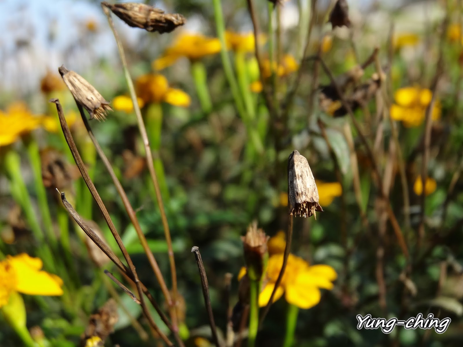 冬至春季開花,頂出腋生,頭狀花序,舌狀花瓣五片,花冠金黃色。