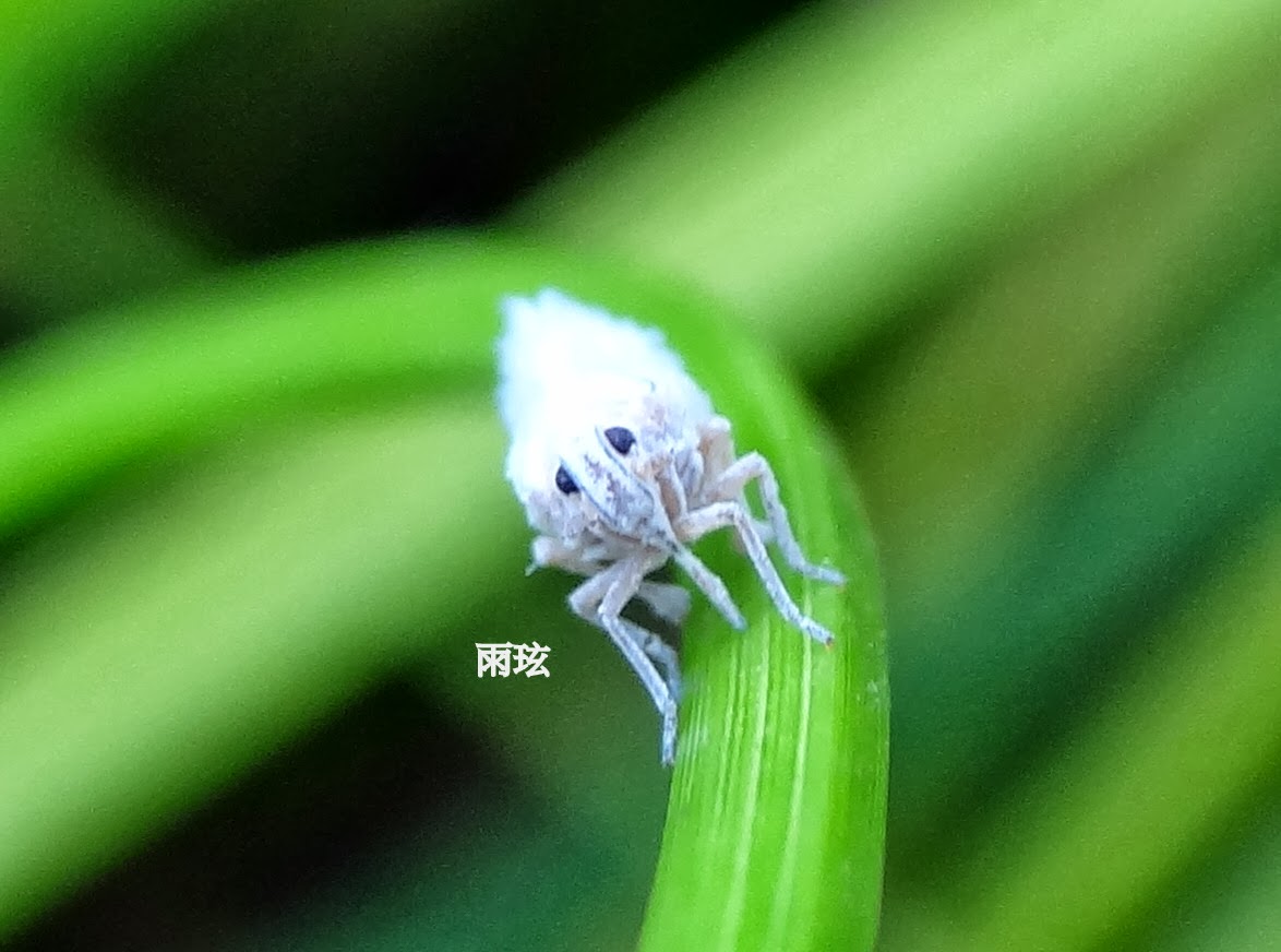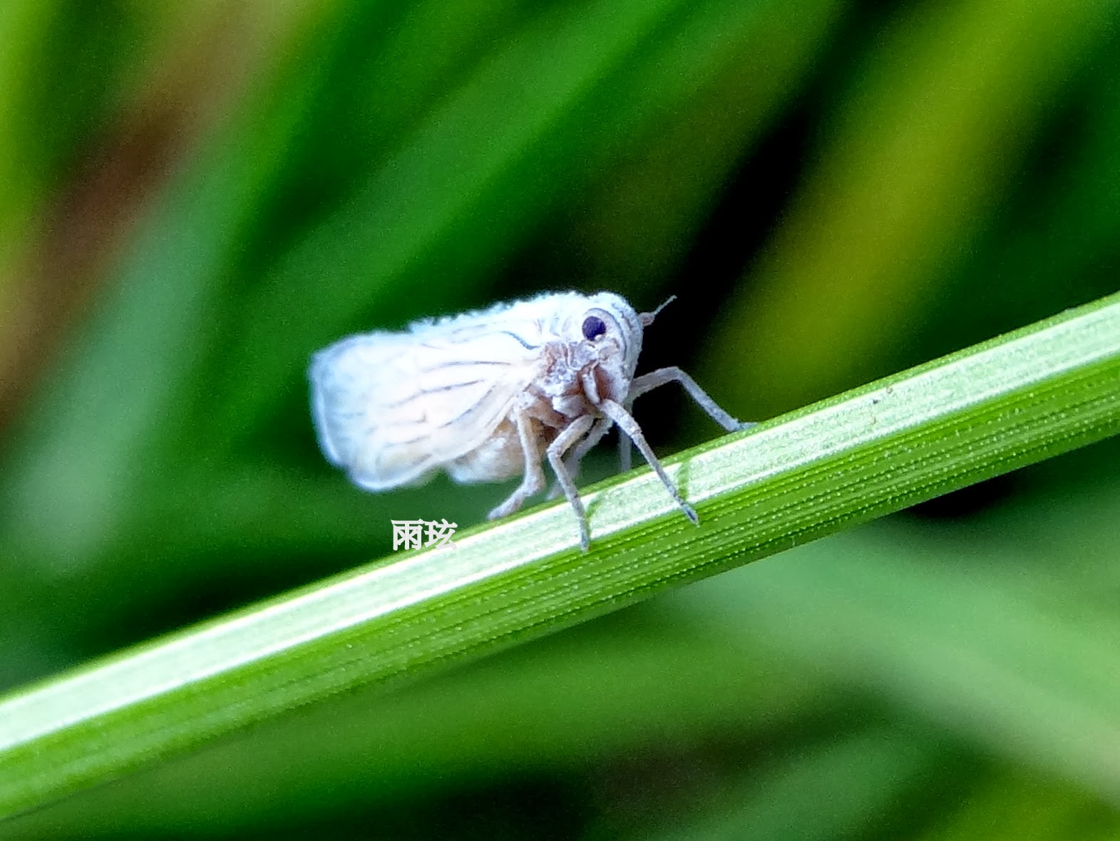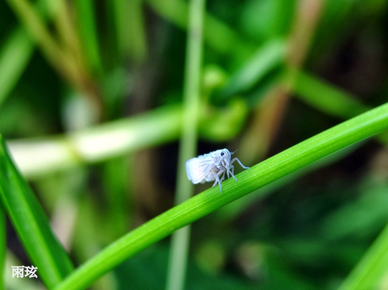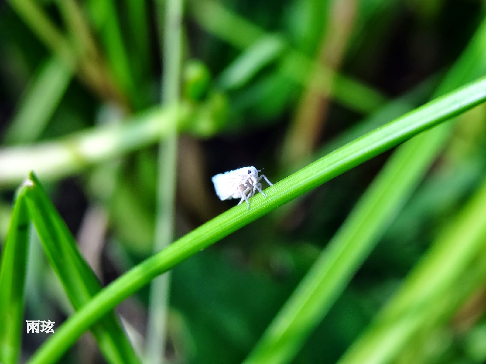 享受這悠閒時.一抹銀白在草間晃動.戴上眼鏡才能好好看清楚牠.原來是隻縞飛蝨.