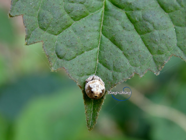 體型大約不到2mm的艾瑟毛圓蛛風鈴木幼芽上一動也不動.看著像團鳥糞.