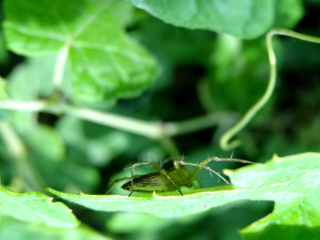 斜紋貓蛛是不織網的.牠爬行於植物中到處尋找獵物.