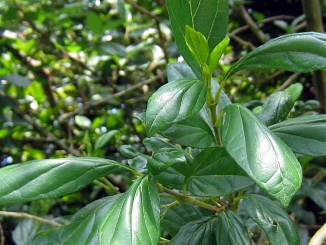 特徵:小喬木.葉卵形至長橢圓形.5~7cm長,1.8~3.5cm寬,上半部疏鋸齒緣或全緣,