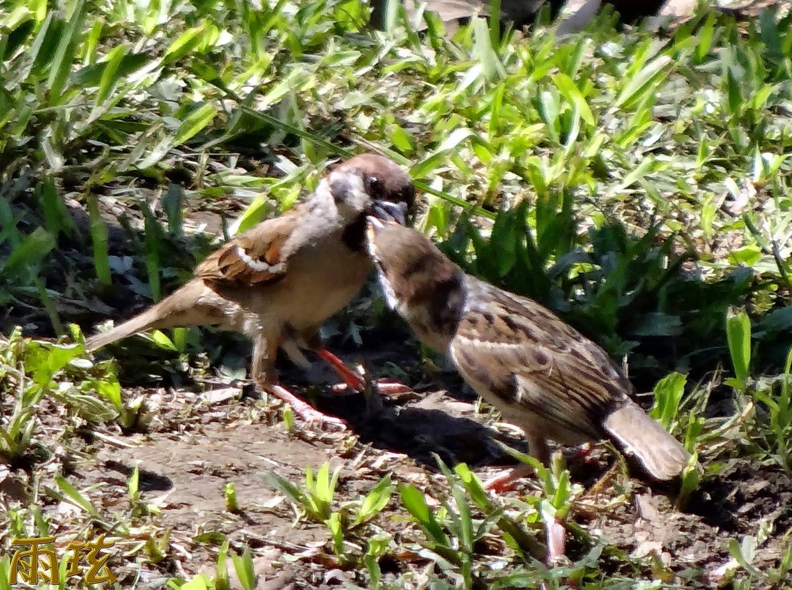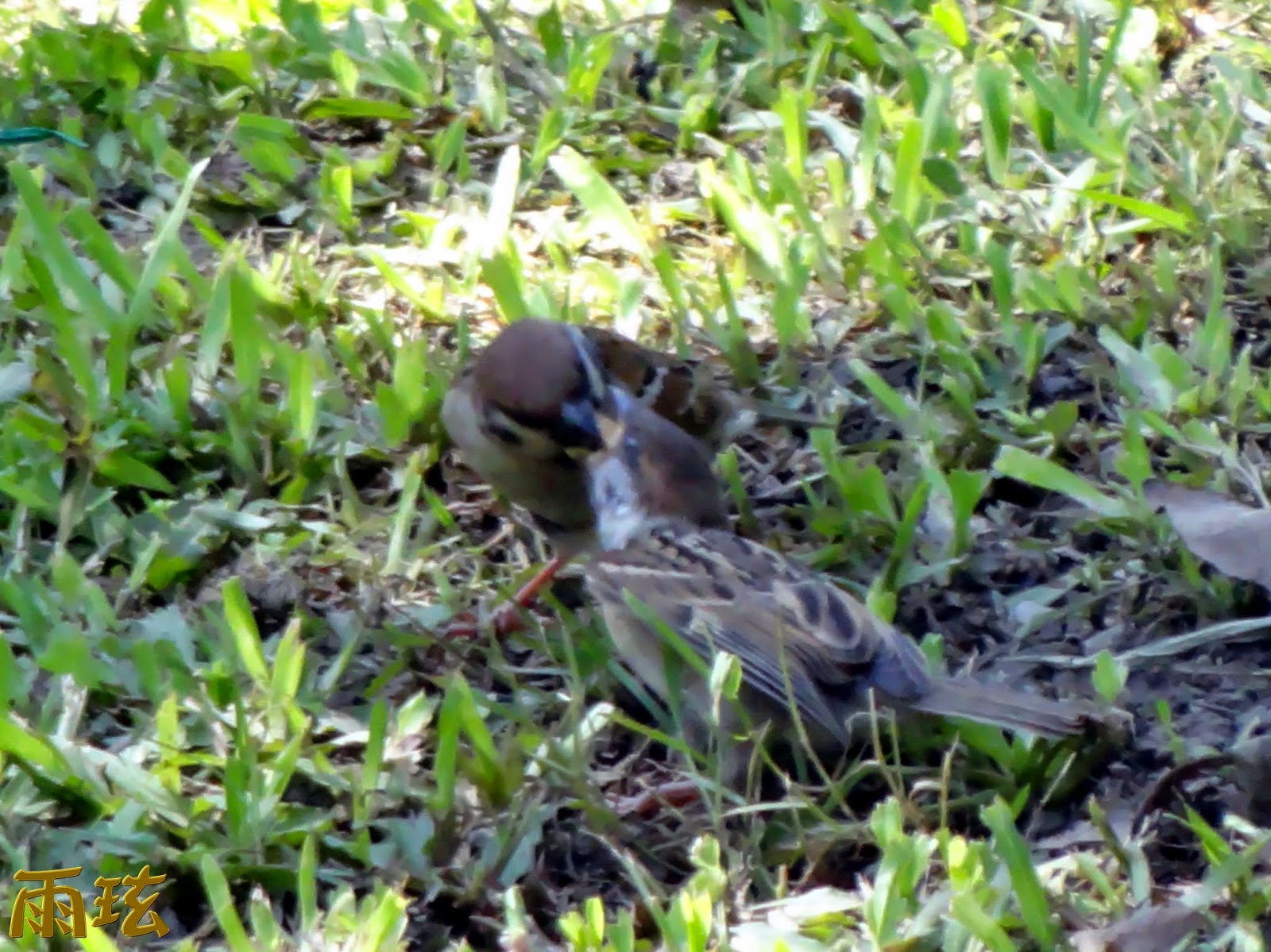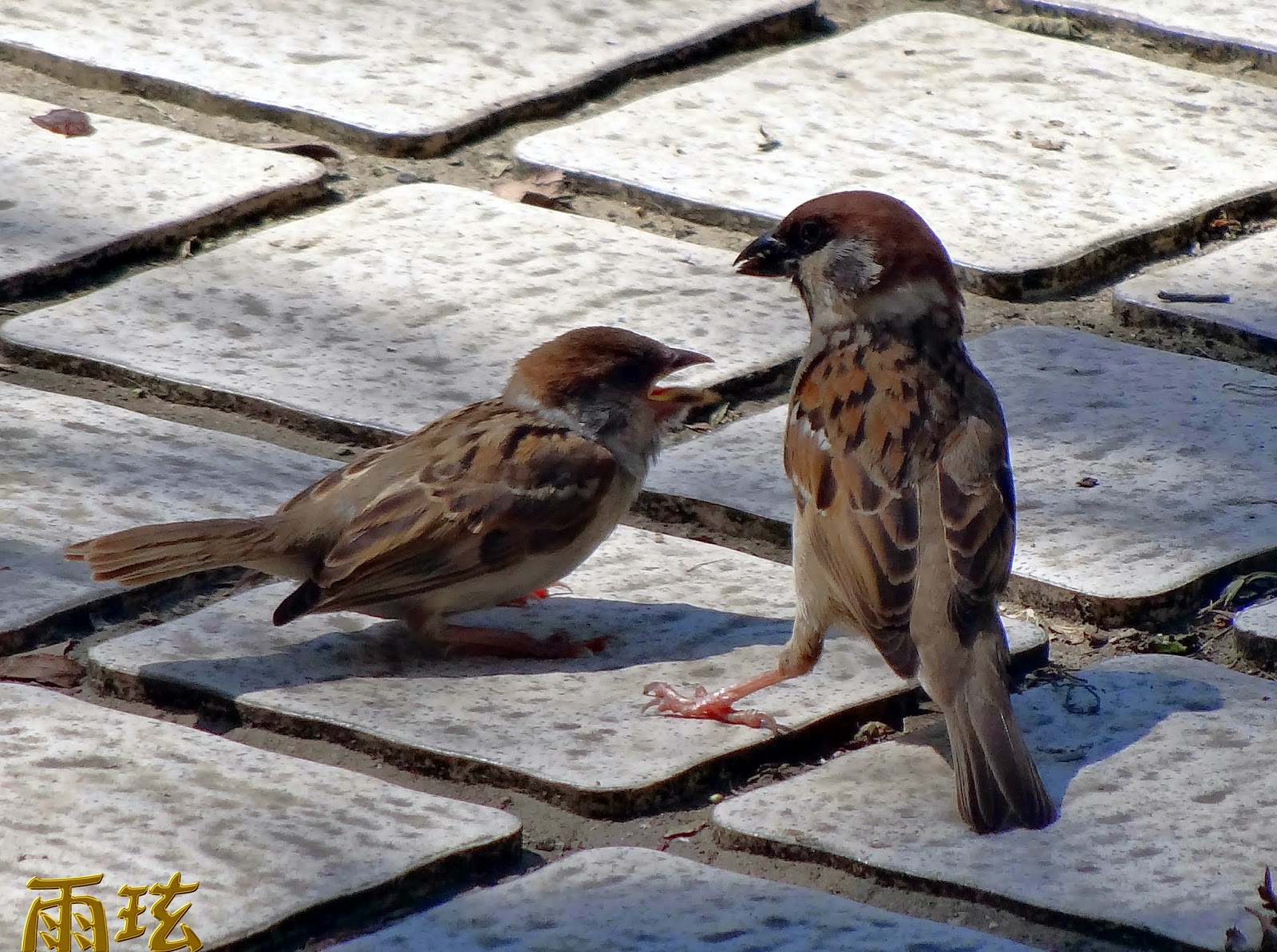 這時…聽到一陣聒噪聲.哦~是麻雀寶寶纏著媽媽要吃吃!
