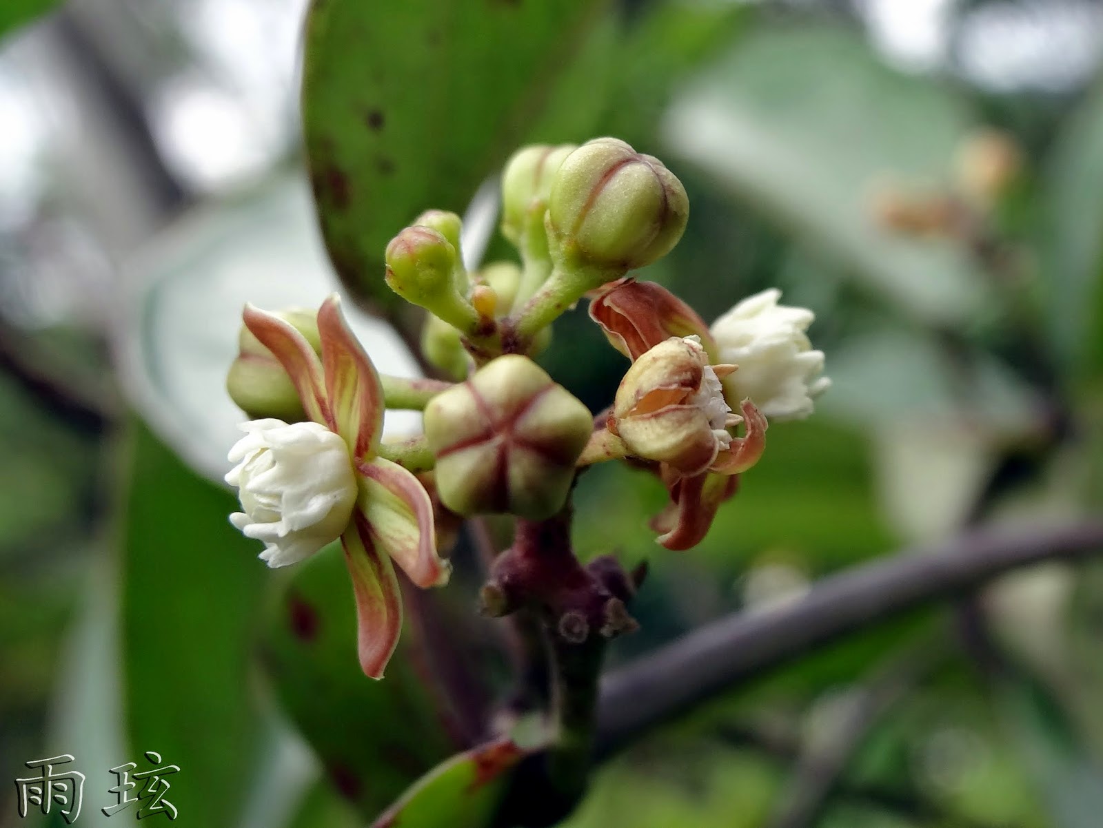 花冠 5 深裂,淡綠帶紅褐色,裂片長橢圓形,長約 0.5 公分,