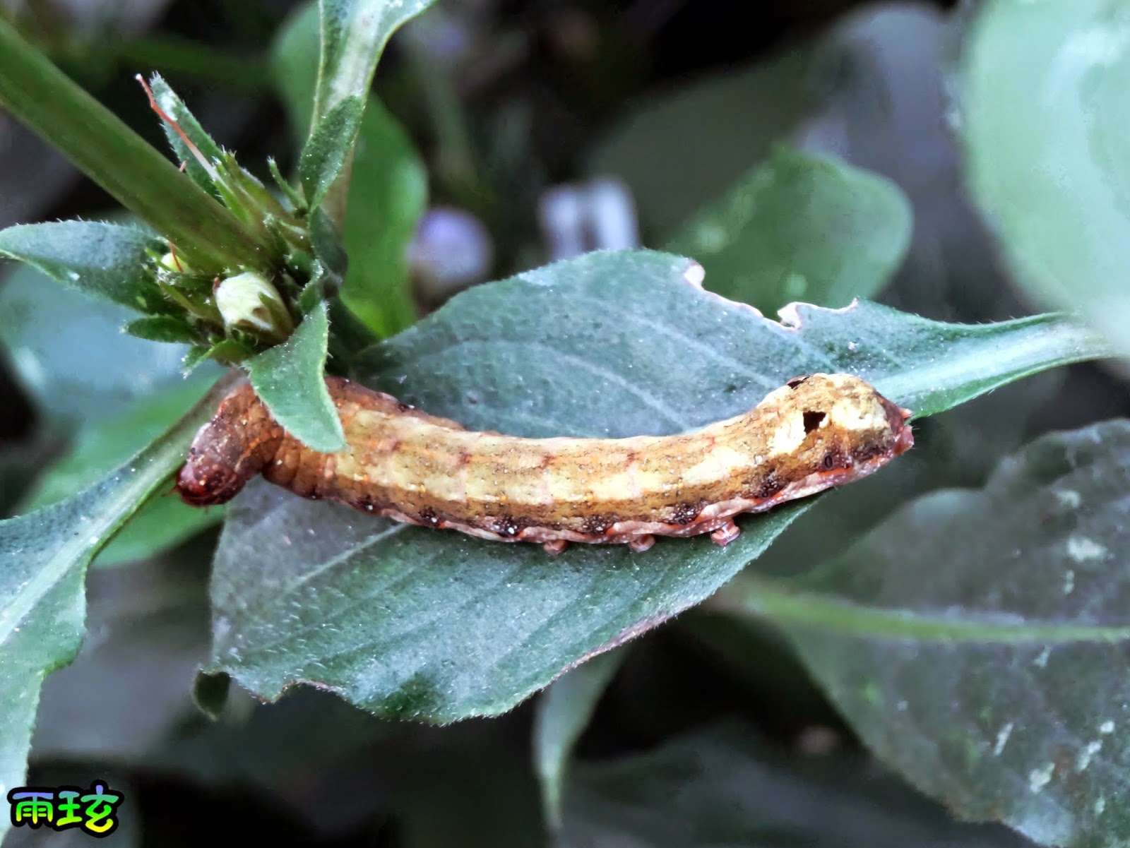 葉子上有蟲啃出的圓洞,兇手是夜盜蛾的幼蟲。