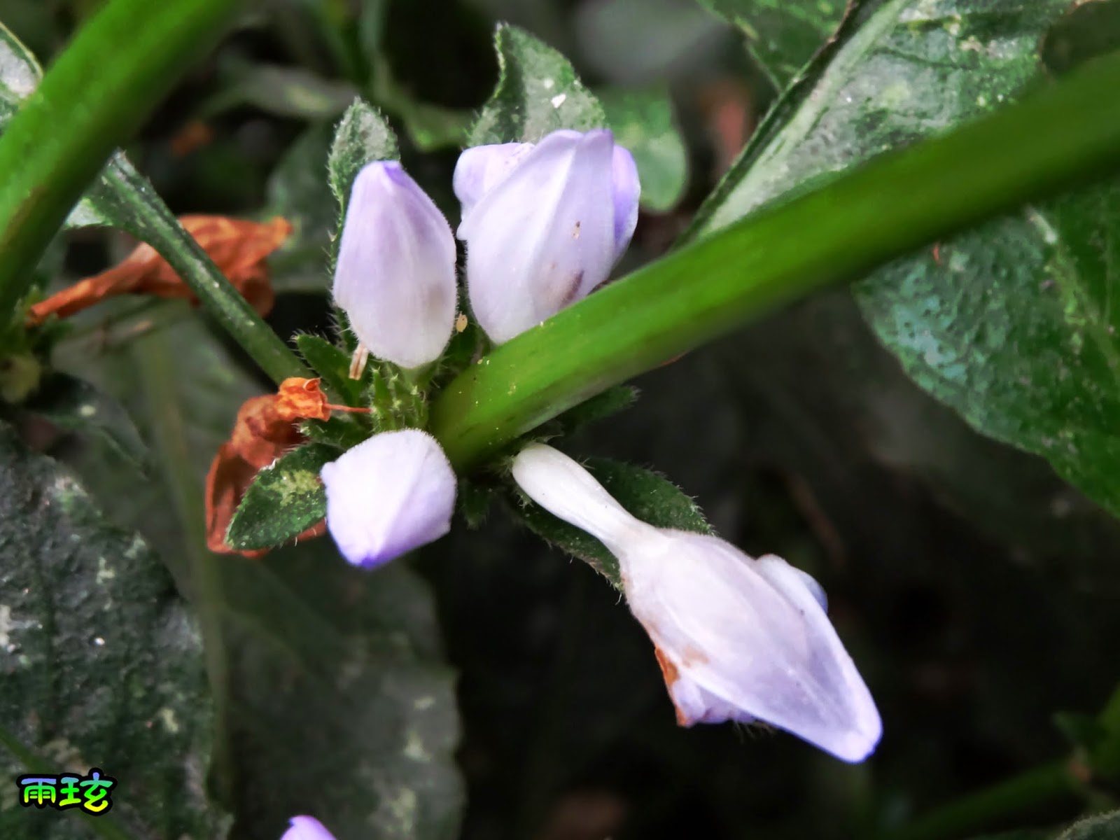 花無柄,紫色叢生在葉腋,花期為 9~2月。
