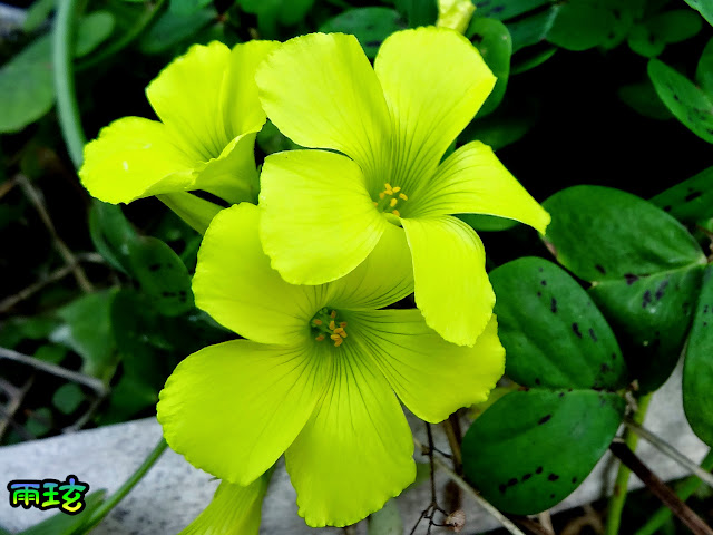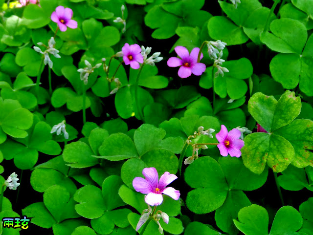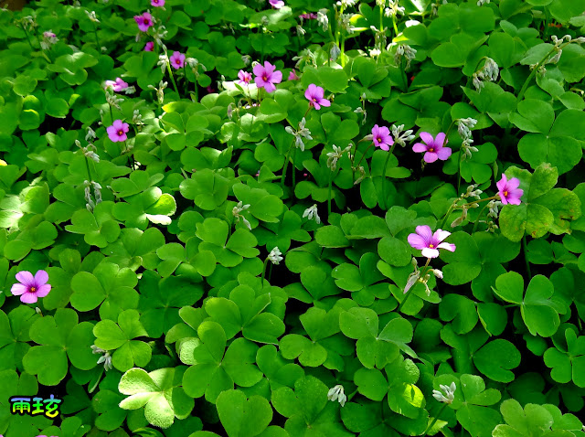 忍不住拍下它們做功課比對發現原來在台灣稱她為雀斑酢醬草因它葉片上有