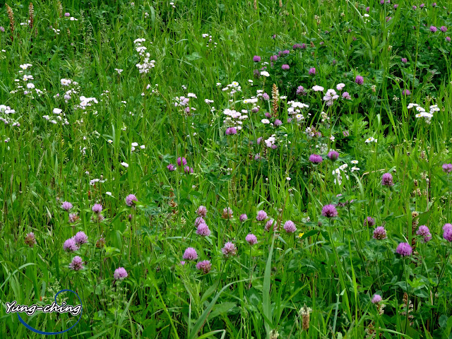 三葉草特殊的白斑環,紅三葉草也一樣(比起白花的葉片具顯尖些)