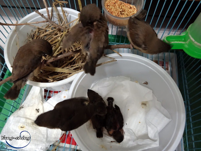 最終下午2點多,老么(左二滿嘴飼料那隻)也能與牠的兄姊平起平坐啦!!!