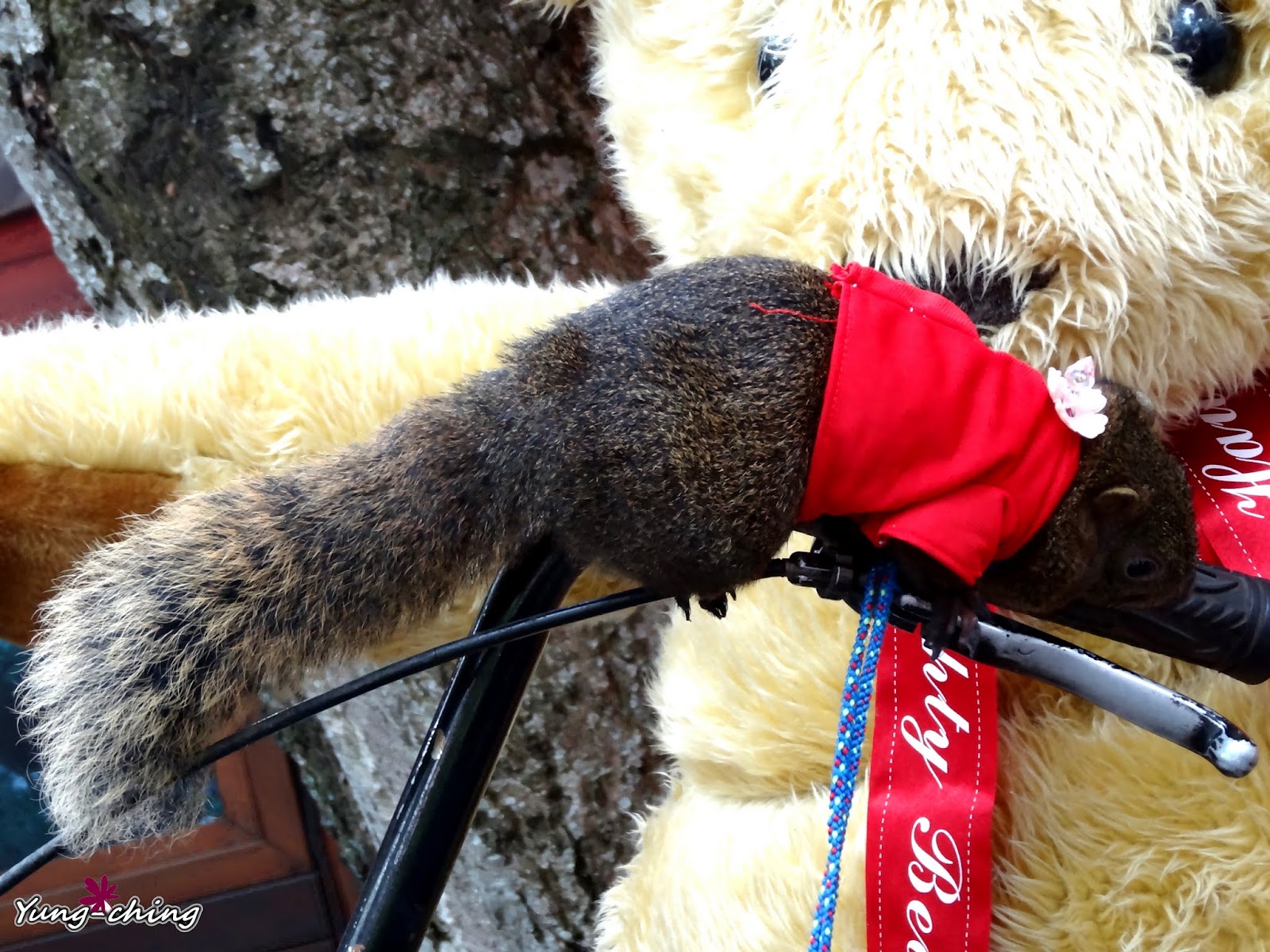 這松鼠太可愛啦(主人還爲牠穿上這小衣...)趕緊又再拍拍拍)哈~開心啊!