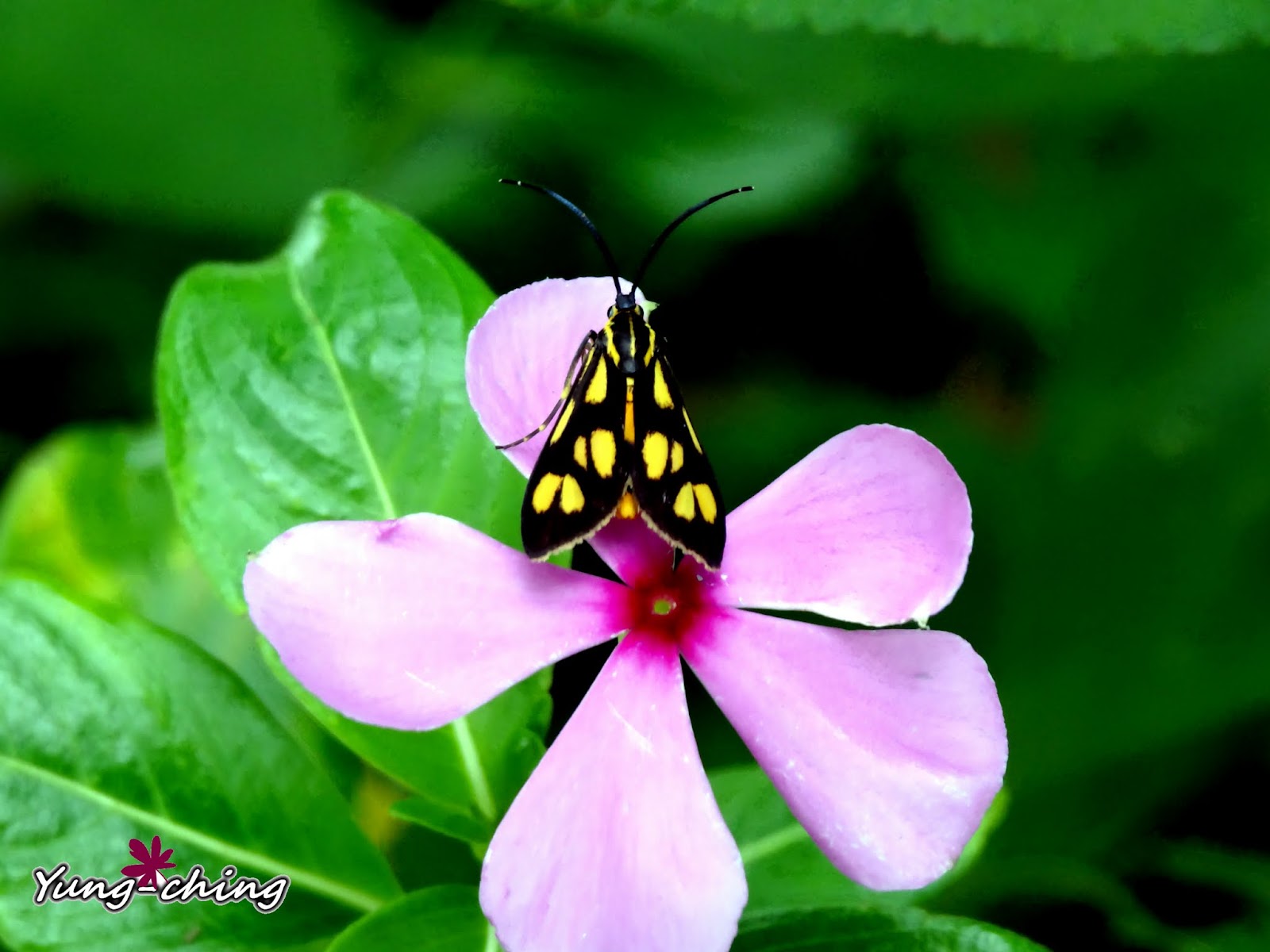小斑蛾亞科Zygaenidae)展翅17-22mm,前翅黑色,翅面有7枚長短不一的黃色斑,
