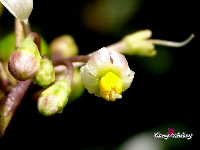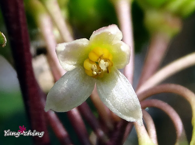 瑪瑙珠~花,單生或數朵成簇,腋生或與葉對生
