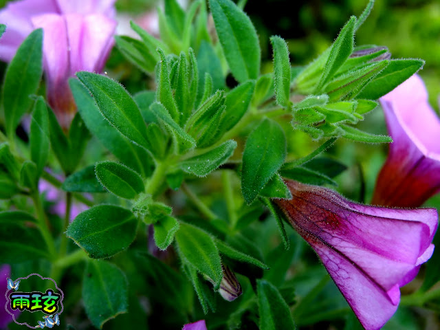 花開於近枝端的葉腋,似漏斗狀的花與矮牽牛相似,辨別的重點在於矮牽牛