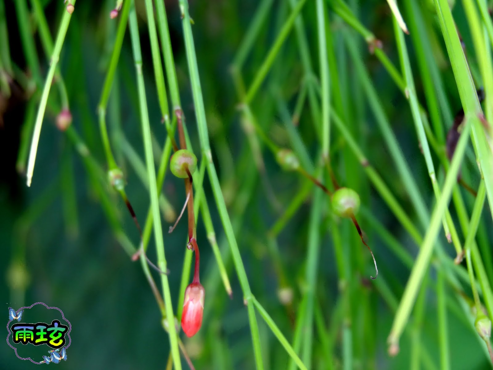 若栽培地勢較高,伏倒後即成垂懸狀,我們看到的是成簇的細莖。葉 4~5 枚輪生