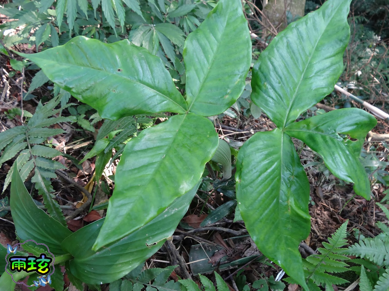 山澗旁的植被中普陀南星應該是最特殊的吧!?我們從小就被嚴重警告過它是~有毒!
