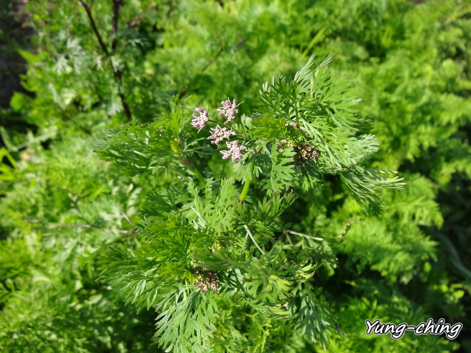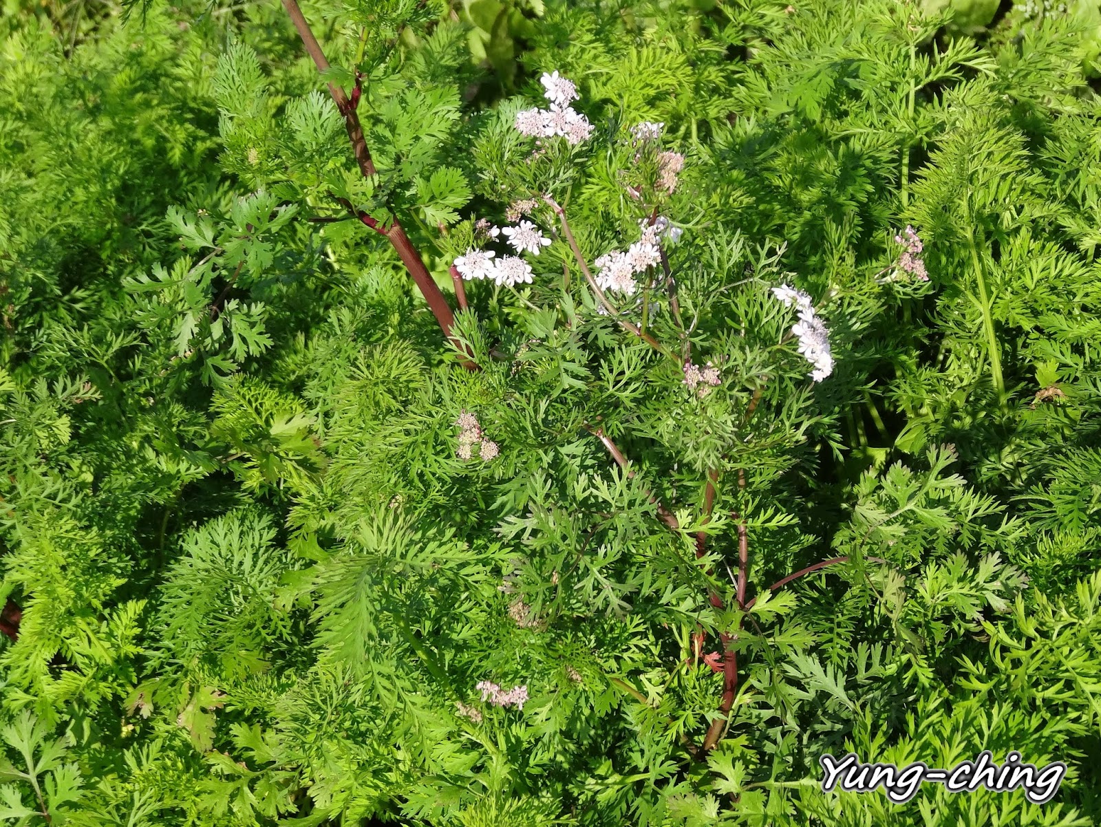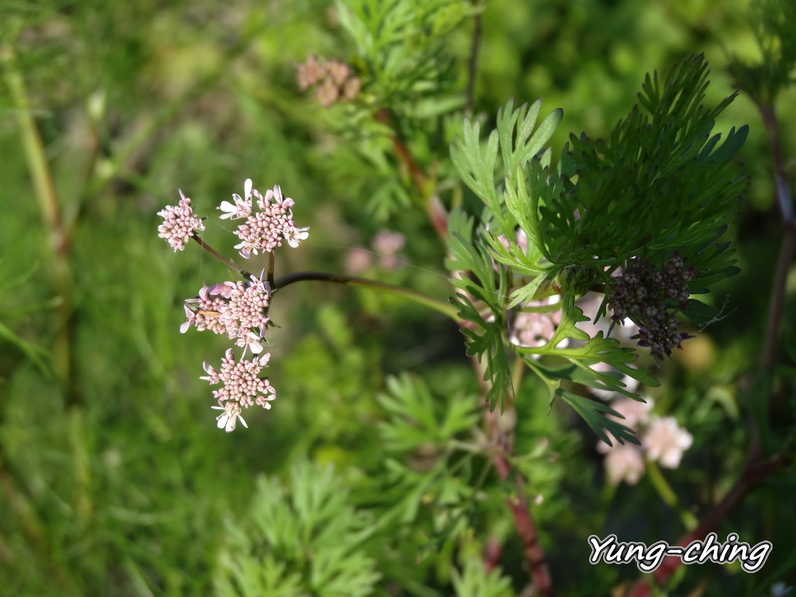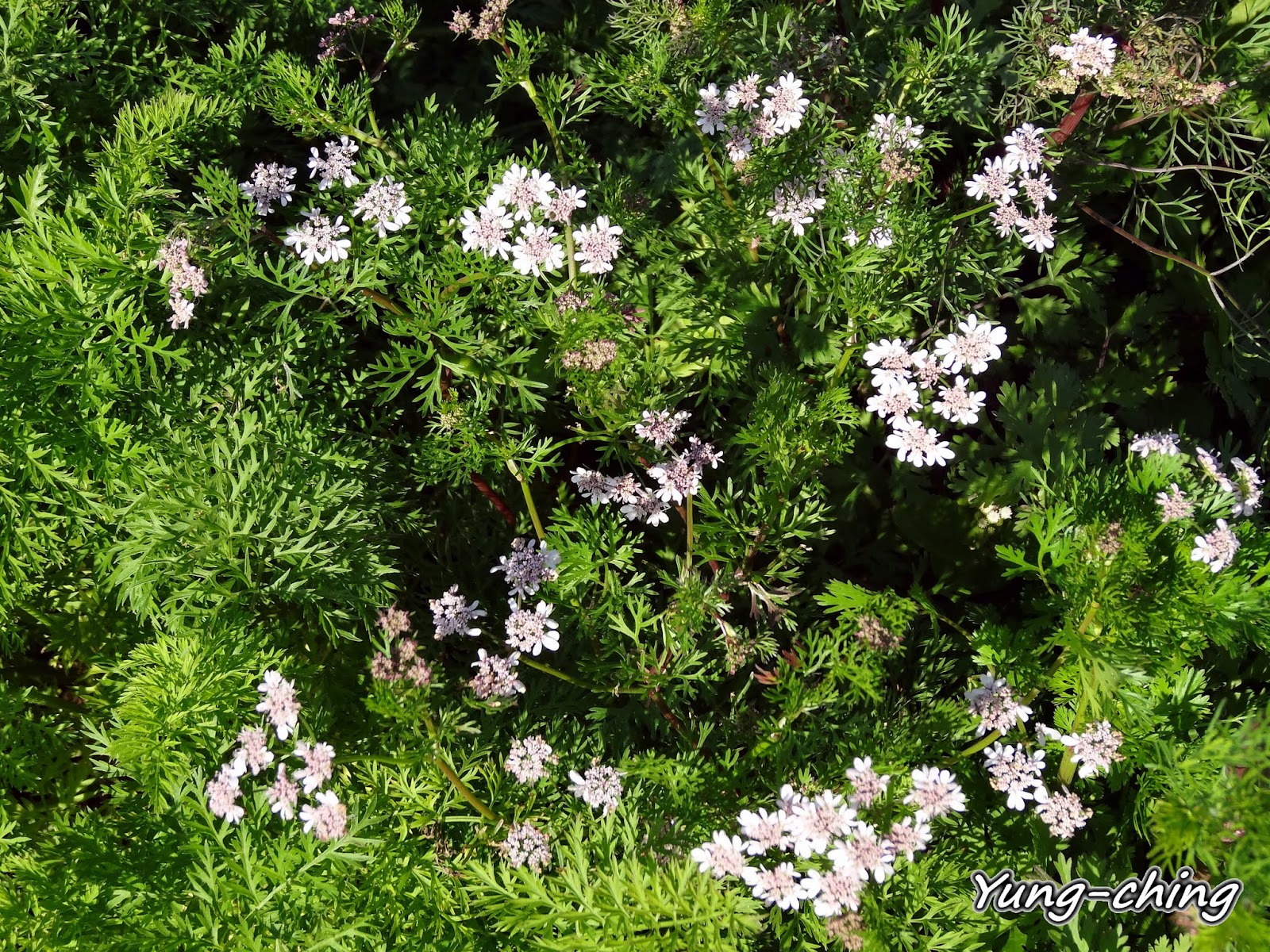 紀錄芫荽(香菜)的花之後我才認識到芫荽(香菜)的花色有淡紫與純白兩種。