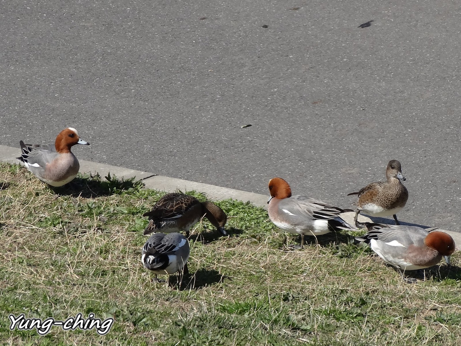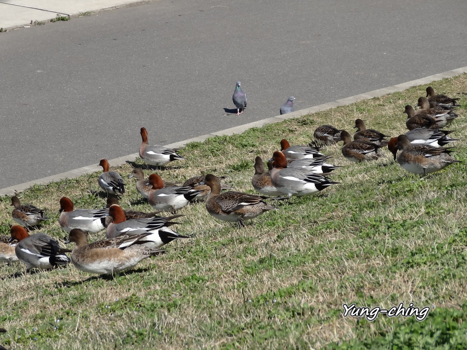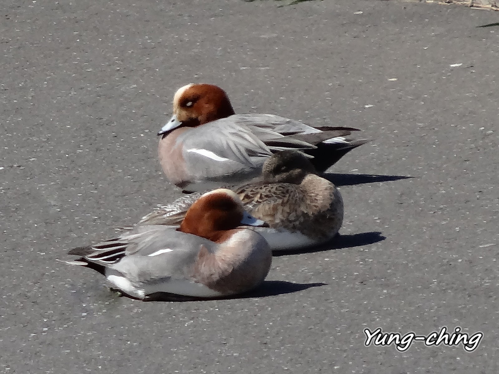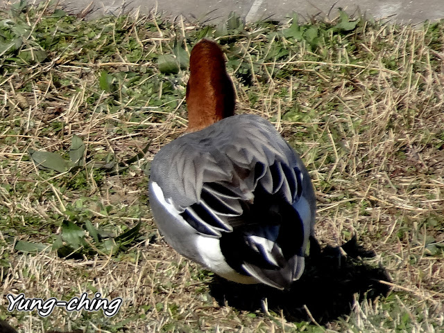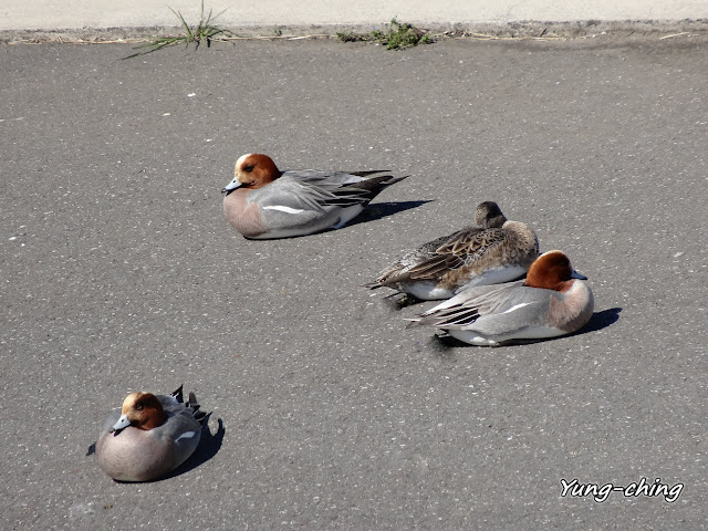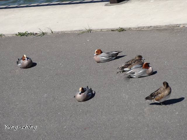 近11點暖烘烘的太陽下~赤頸鴨開始集體昏睡中。