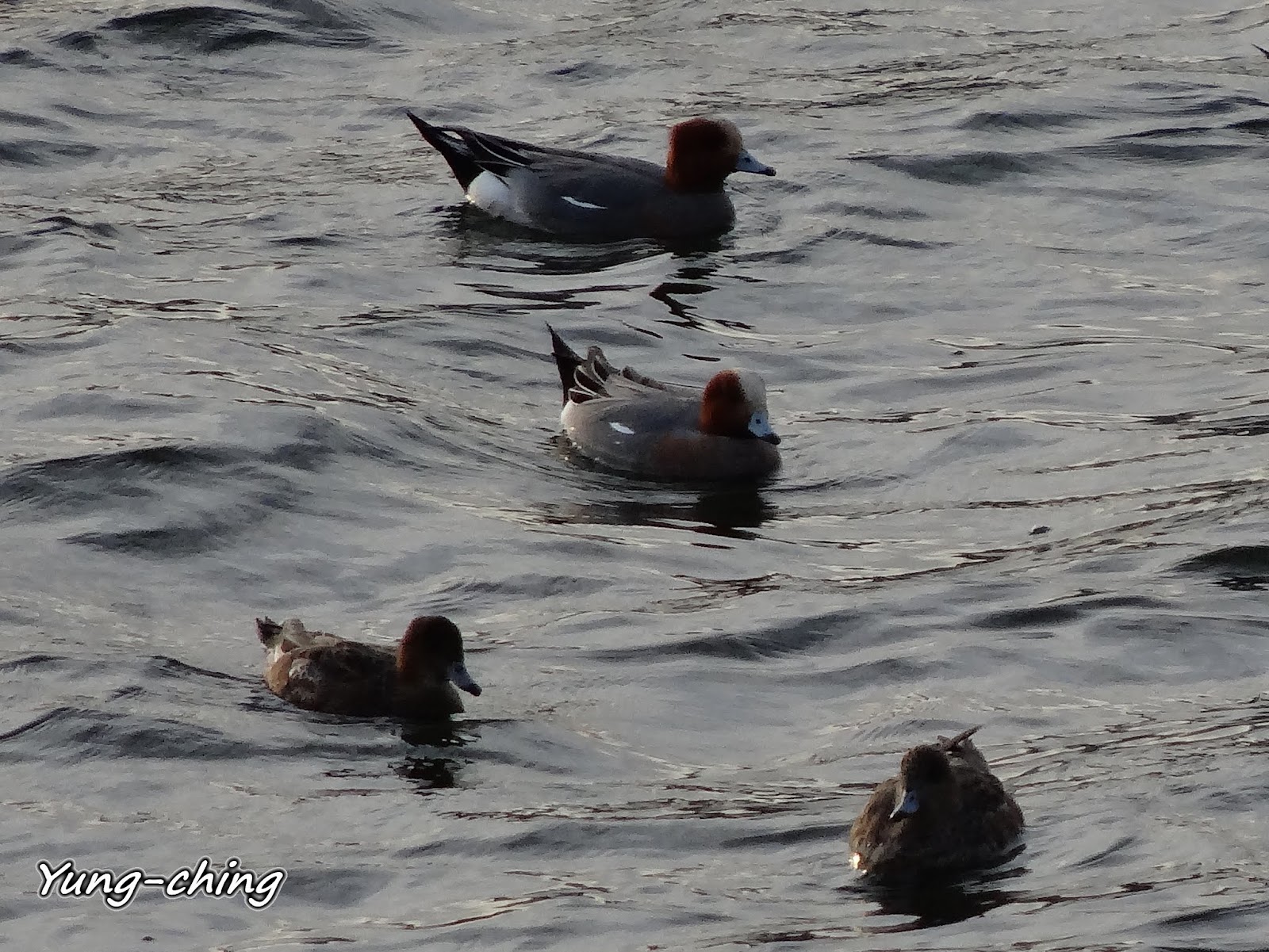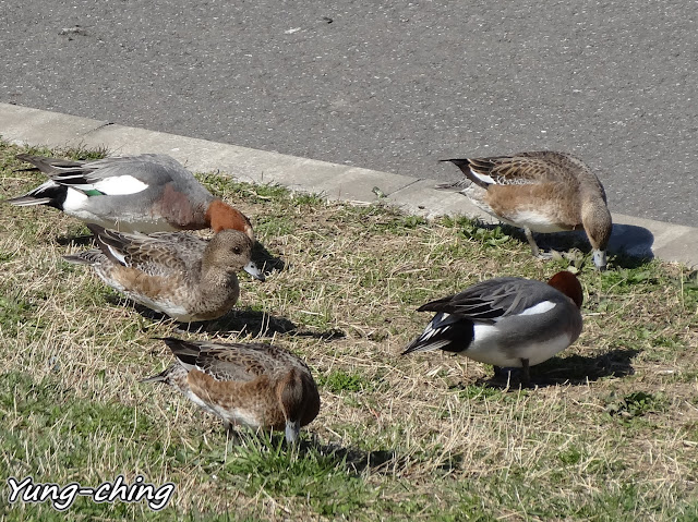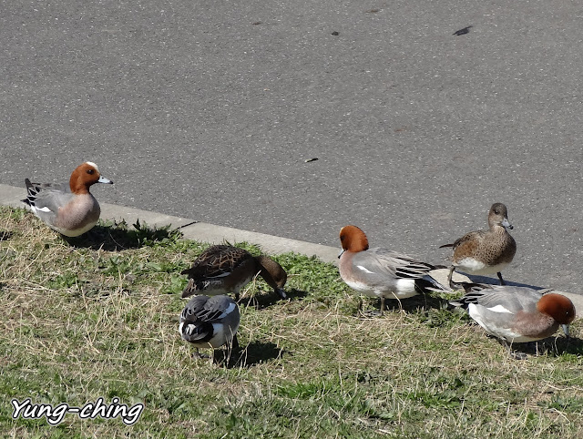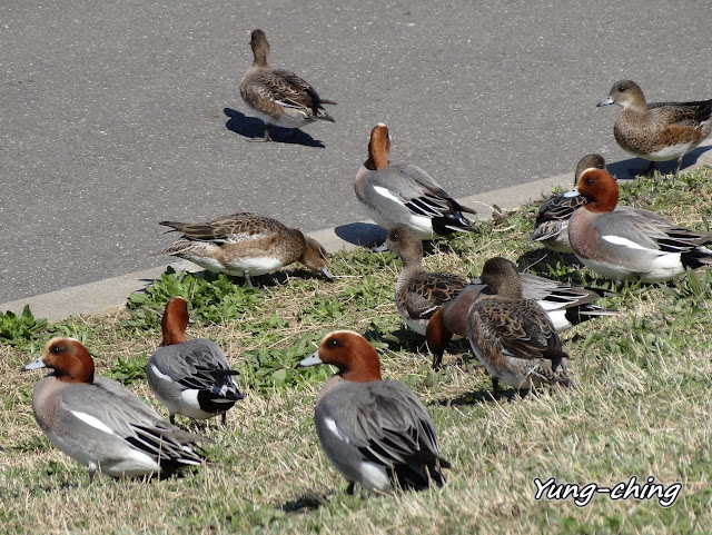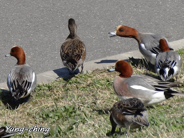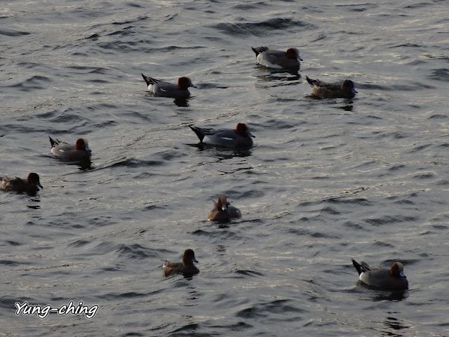 這群喧嘩雜沓的鴨群是赤頸鴨們,體型不如飼養鴨子那般大,