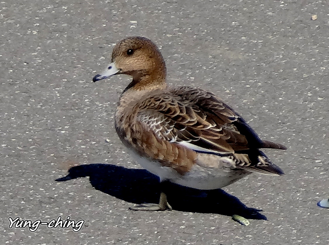赤頸鴨雌鴨除了嘴尖端一樣有一小塊黑色斑紋,顏色真的好樸素啊!
