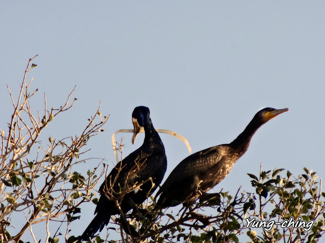 水鳥保護區周圍河堤旁有許多乾蘆葦,對鸕鶿來說築巢取材也太容易了 !