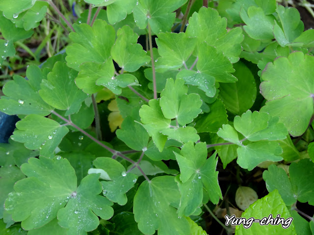 耬斗菜的葉片還綴著清晨的露珠