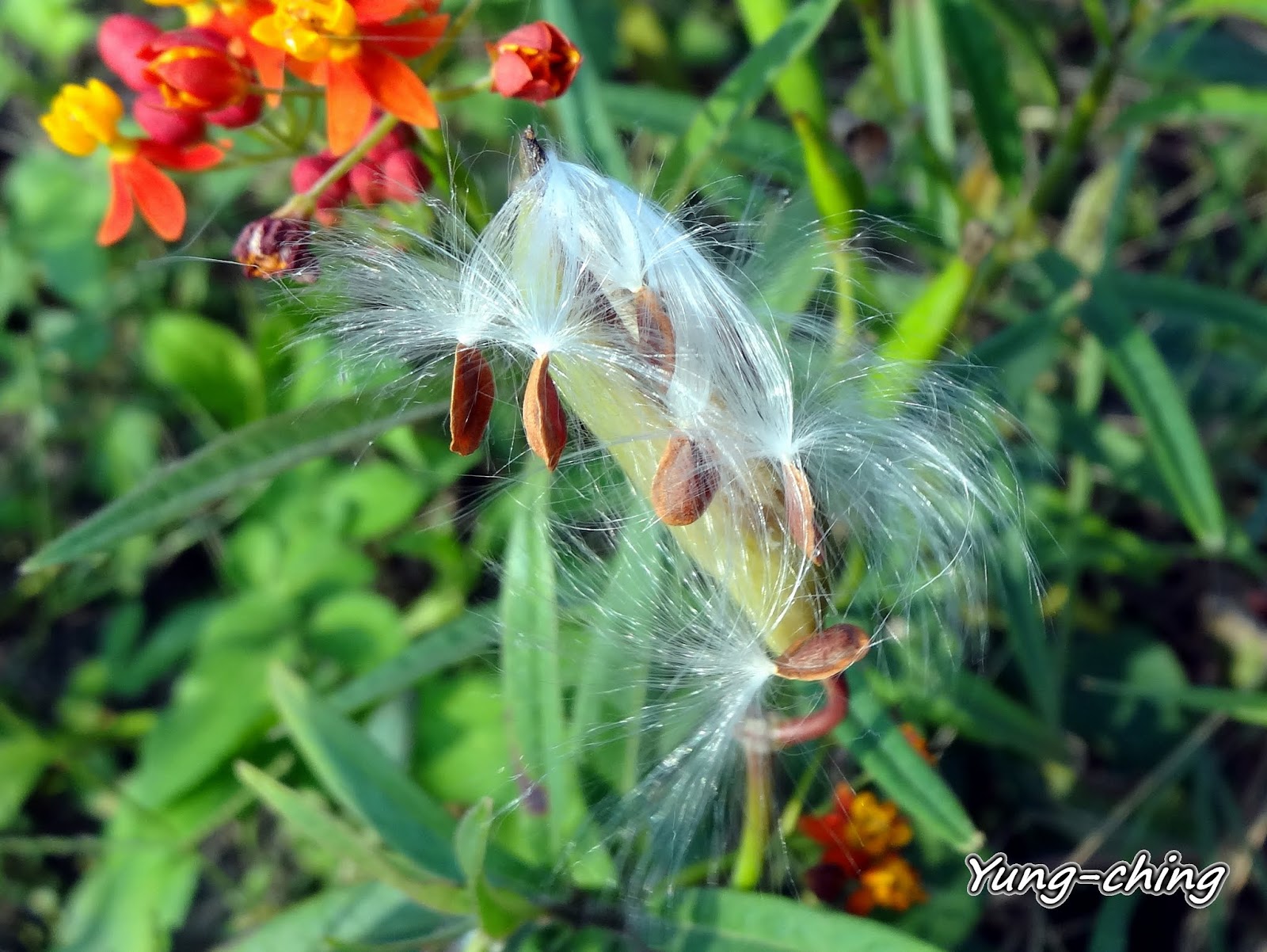 成熟的果實爆裂開,這些有著潔白冠毛的小小種子即將乘風展開它們的生命之旅囉!